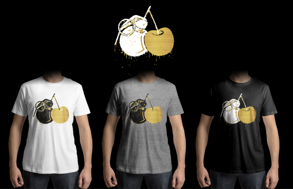 This is a dripping gold version of the logo made with gold foil for a real shine, sitting large across the chest. Hand screen printed by a local clothing manufacturer in the South Coast of the UK on an extremely high-quality 'ascolour organic' t-shirt.